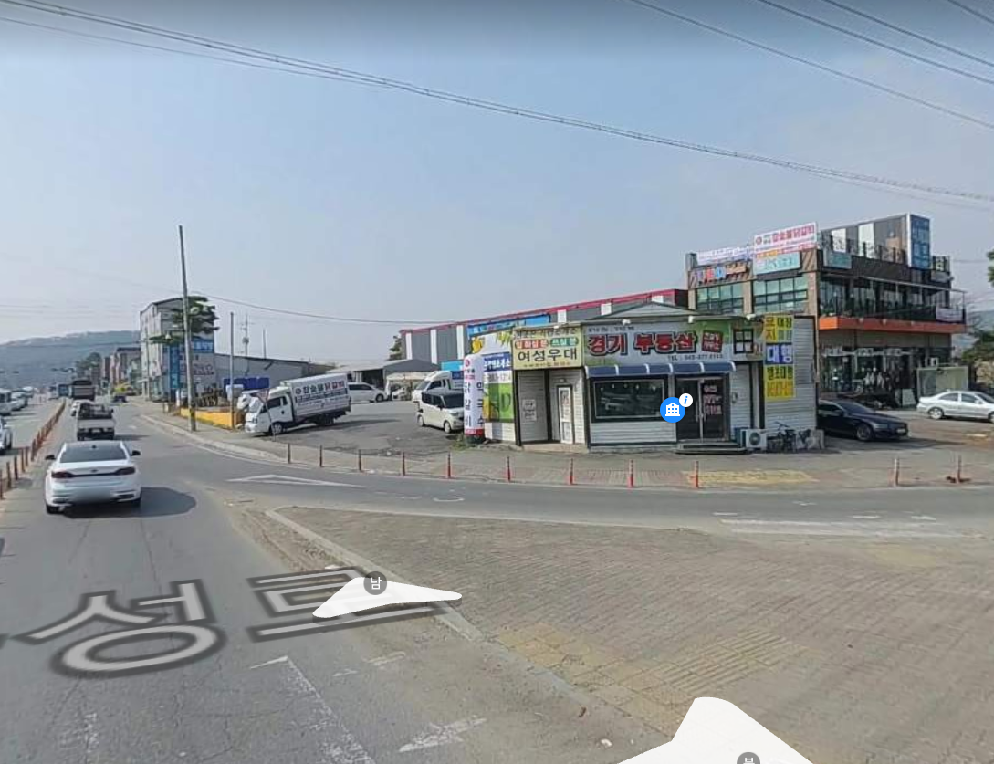첫 번째 사진이 감곡네거리 지도이고, 기사를 토대로 배경이 된 다이소 건물이 보이는 두 번째 사진 그리고 마지막 사고가 발생한 사거리 인도 위 사진입니다.