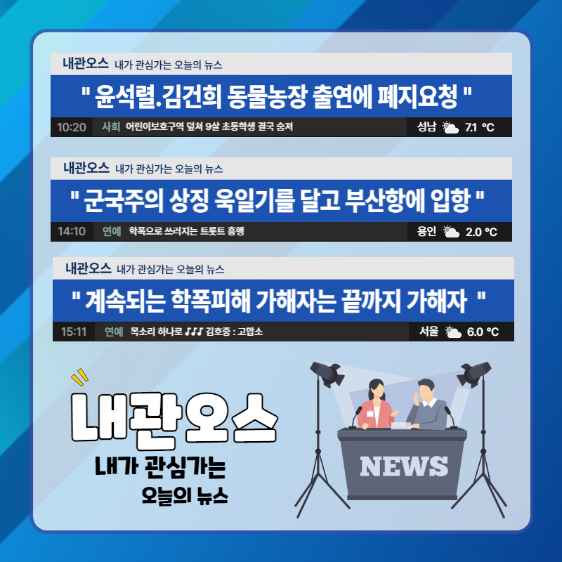 최근 학폭 가해자에 대한 내용을 진학할 때 생활기록부에 남겨야 하는데도 교장(반포고등학교 고은정 교장)이라는 사람이 어떤 대가를 받았는지는 모르지만, 새로운 인종이 나타났다는 기사가 많이 나와서 저도 참으로 답답하고 어이없었던 기억이 있는데, 결국 학교도 가진 사람에게 고개를 숙이는 집단이 되었다는 확실한 증거라는 생각에 한동한 힘들었었습니다.