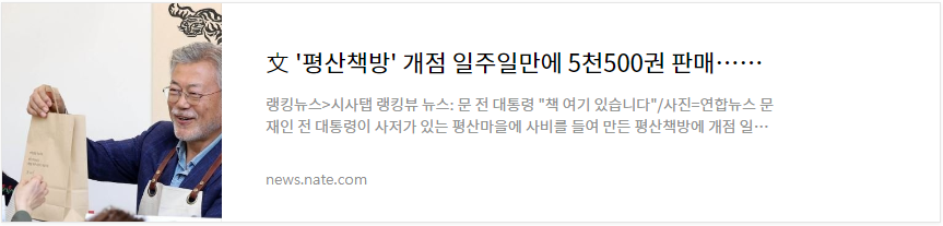 문재인 전 대통령님께서 평산마을에 사비를 들여서 책방을 오픈하였는데, 개점 1주일 만에 5천5백권의 책이 팔리고 1만여 명이 방문했다는 소식입니다.