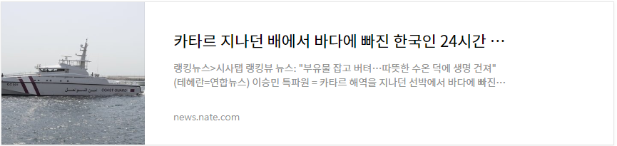 카타르 해역을 지나던 배에서 바다에 빠진 한국인이 24시간 만에 구조되었습니다.