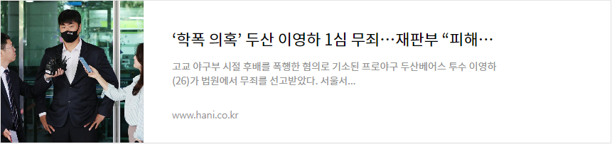 학폭 의혹으로 재판을 받은 두산의 이영하 선수가 1심에서 무죄를 선고받았다고 합니다.