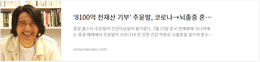 7월13일 중국 연예매체에 따르면 주윤발이 코로나19의 감염에 의한 건강악화로 뇌졸중을 일으켜 혼수상태에 빠졌다는 내용을 보도했다고 하였습니다.