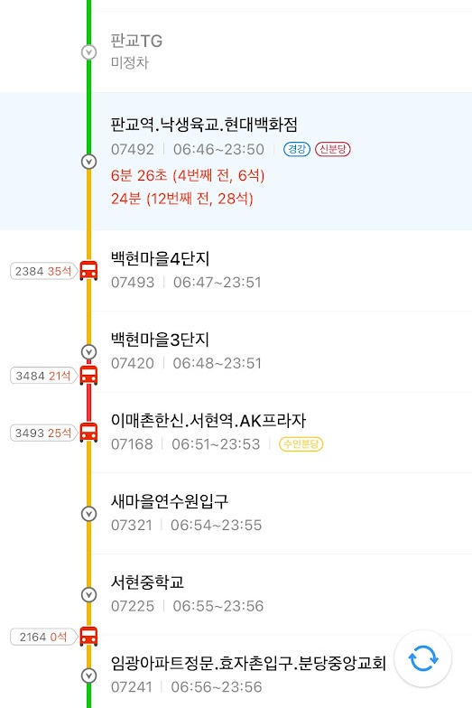 그렇게 일찍 나오는 사람들이 많아서 일까요? 오히려 7시 이후 시간대 차량의 경우 분당 초입 정류소에 들어섰을 때 잔여 좌석이 있는 상황이 만들어졌습니다.