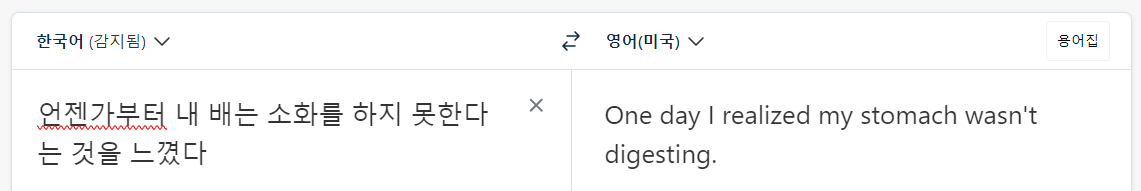그랬더니 자동으로 한국어를 감지를 하고 오른쪽에는 지정된 영어로 출력이 되었습니다.