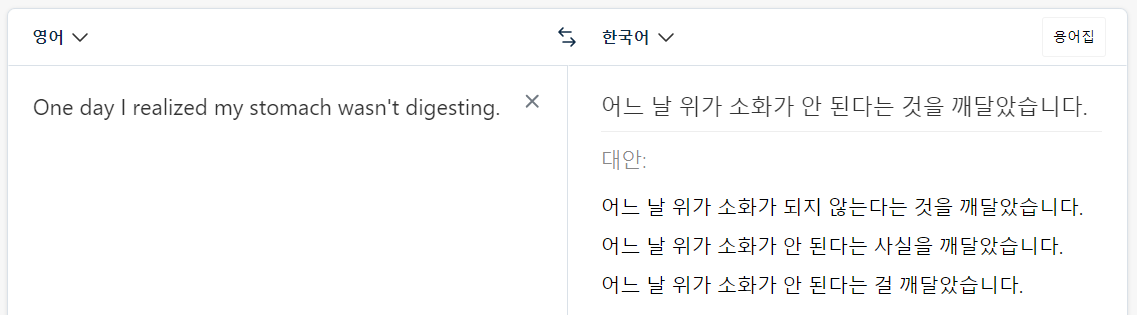 물론 제가 쓴 글의 느낌과는 사뭇 다르기는 하지만, 그래도 잘 번역된 것 같아서 앞으로는 자주 사용하게 될 것 같습니다.