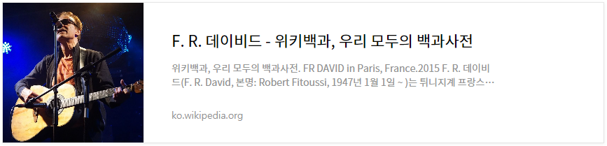 FR David의 노래 중에 또 다른 기억 속 노래, 사실 저는 이 노래는 잊고 있었습니다.