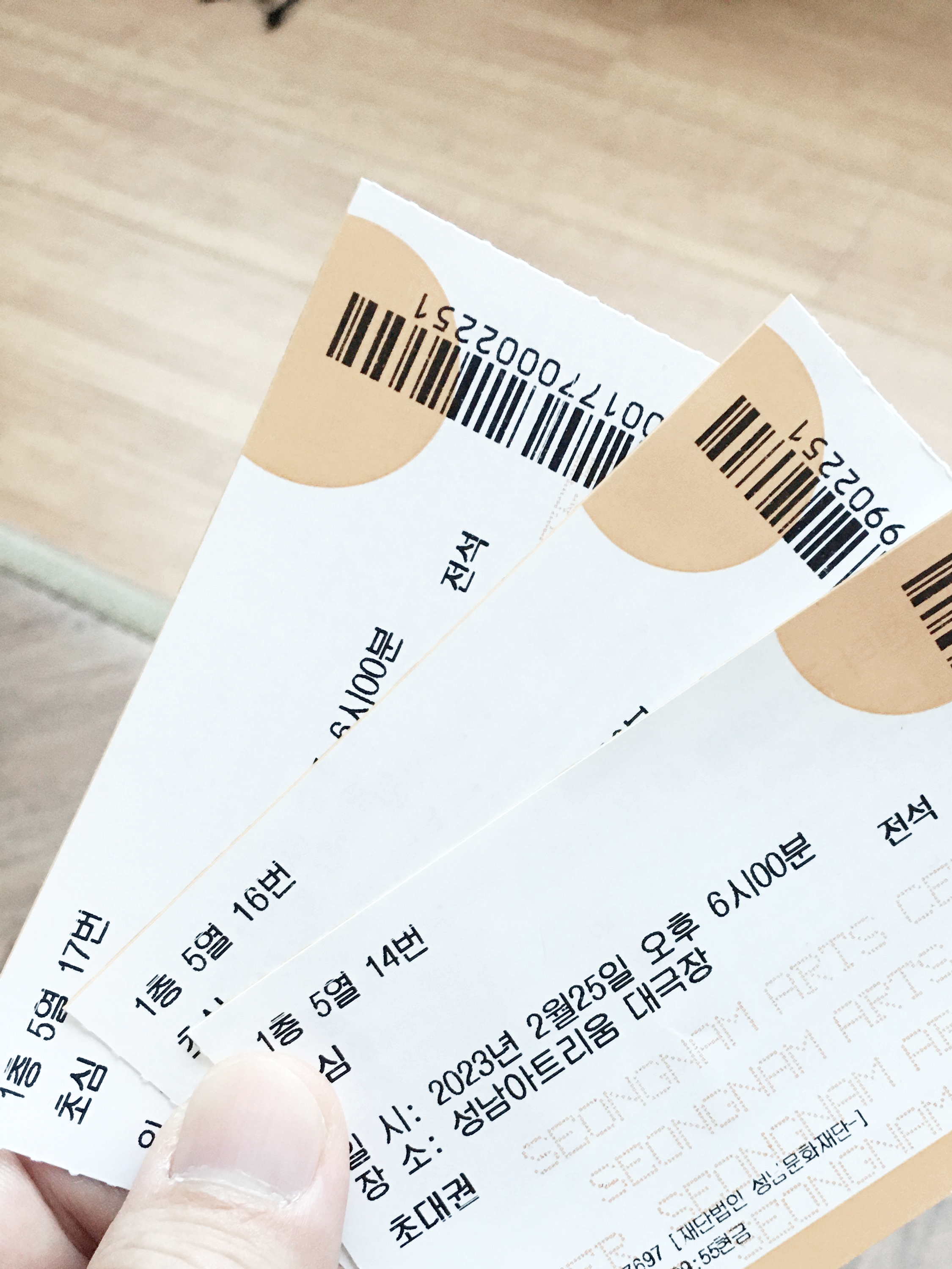 위 사진은 서현에 소재한 학원에서 박나현 선생님으로 부터 받은 초대권과 성남아트리움 대극장에서 바꾼 정식 초대권입니다.