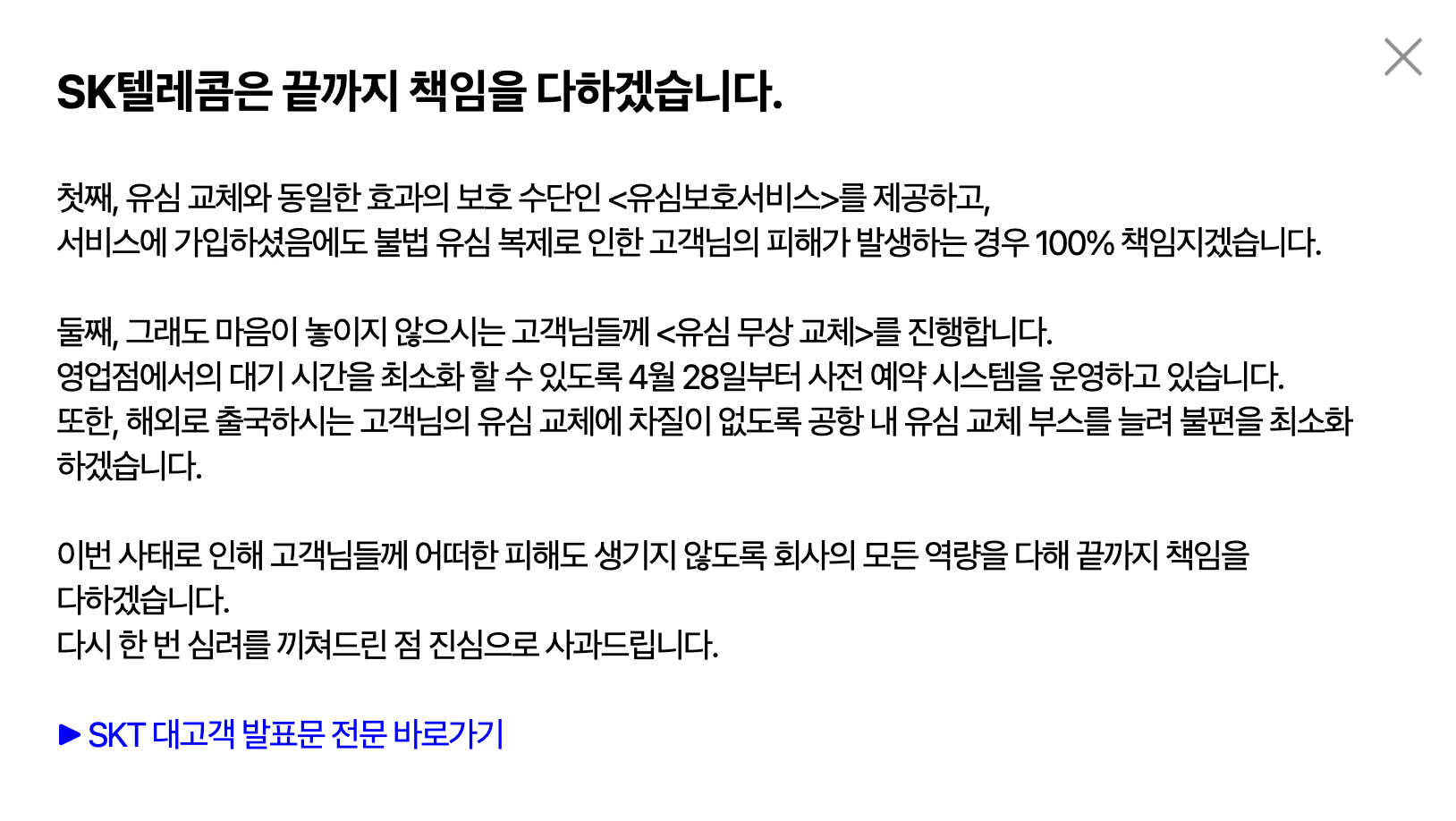 SK텔레콤은 끝까지 책임을 다하겠습니다???