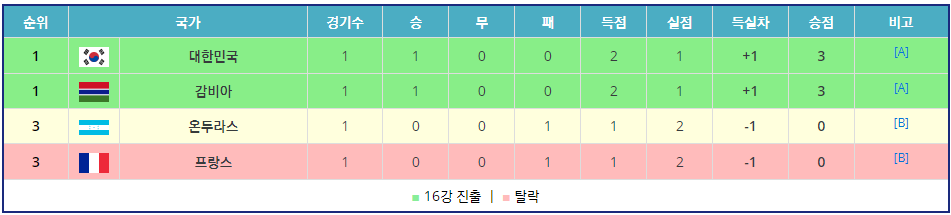 이번에 F조의 최강자라고 하는 프랑스를 꺾은데 있어 조별리그 통과에 청신호가 켜진 샘입니다.